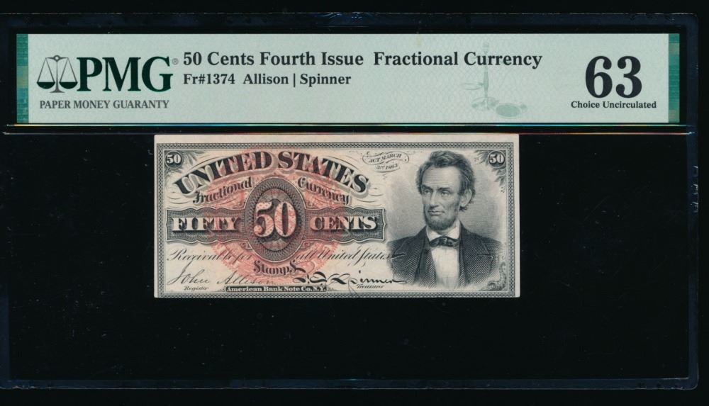 One 50 Cent Fourth Issue Fractional Note PMG 63.