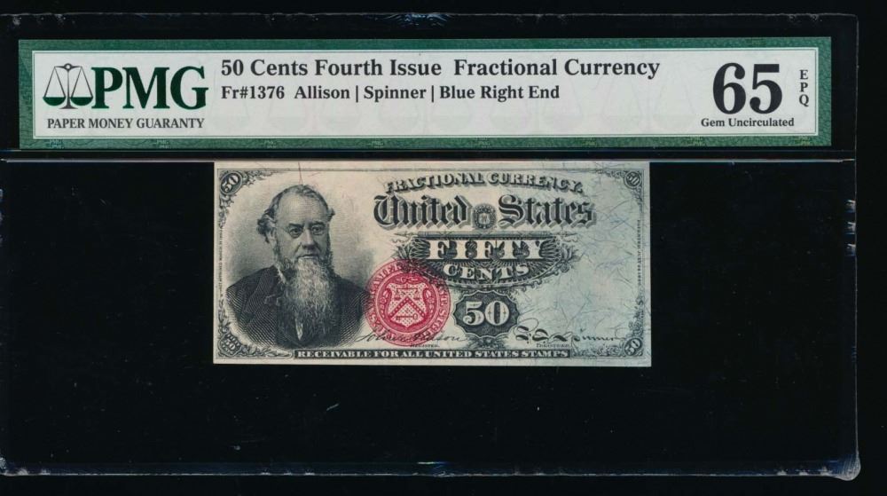 One 50 Cent Fourth Issue Fractional Note PMG 65EPQ.