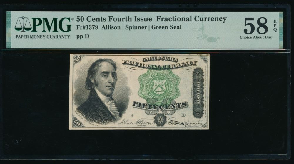 One 50 Cent Fourth Issue Fractional PMG 58EPQ>