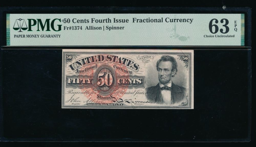 One 50 Cent Fourth Issue Fractional PMG 63EPQ.