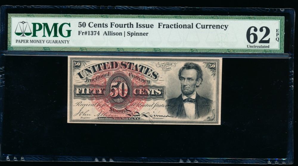 One 50 Cent Fourth Issue Lincoln Fractional Note PMG 62EPQ.