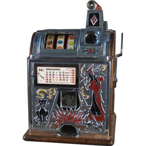50 Cent Jennings Model B Slot Machine w/Witch front casting that may be a reproduction. w/Key