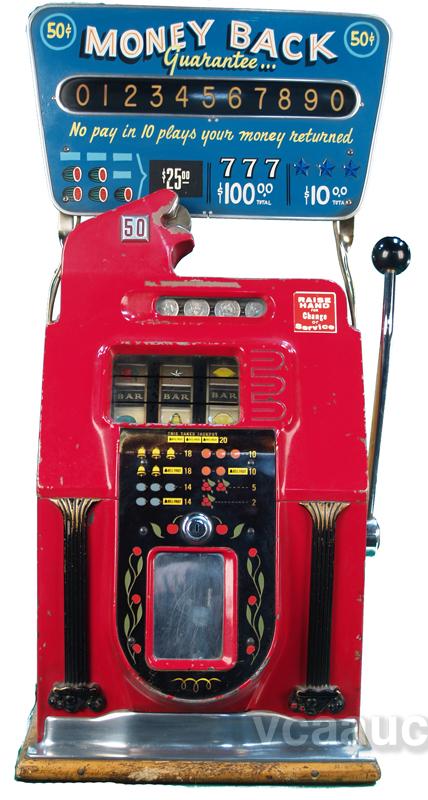 50 Cent Mills Golden Falls "Money Back" Slot Machine C. 1946 w/ key