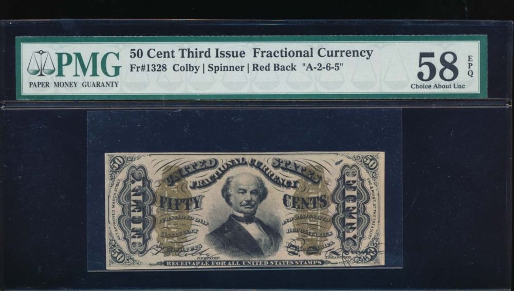 One 50 Cent Third Issue Fractional Note PMG 58EPQ.