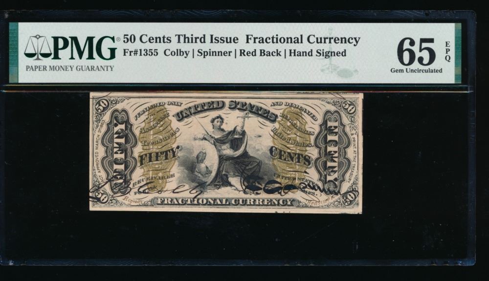 One 50 Cent Third Issue Fractional Note PMG 65EPQ.