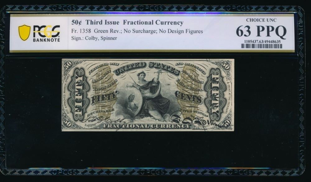 One 50 Cent Third Issue Fractional PCGS 63PPQ.