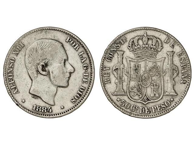50 Centavos de Peso. 1884. MANILA. ESCASA. MBC-.