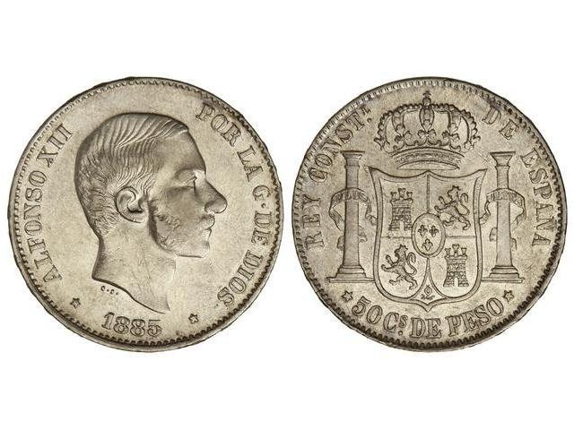 50 Centavos de Peso. 1885. MANILA. (Rayitas). MBC+.