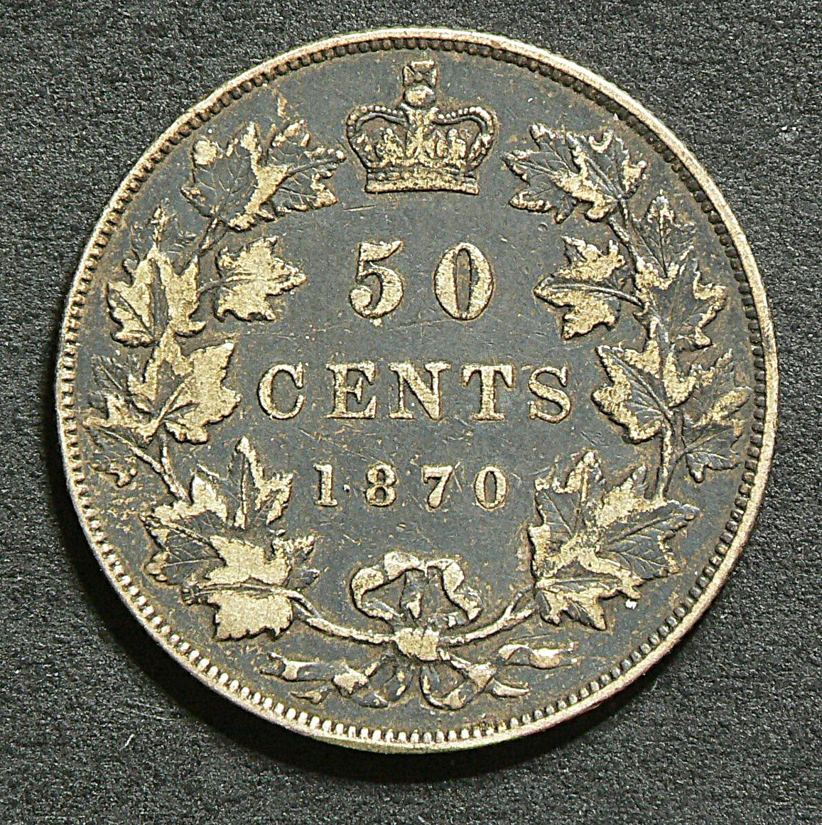 50 Cents 1870, grade F-12; L.C.W., included is an old enveloppe with information.