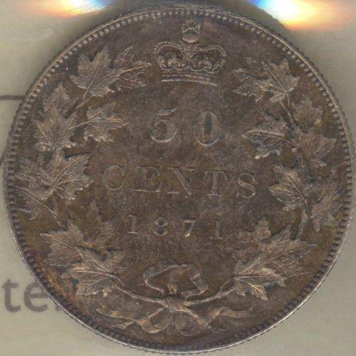 50 Cents 1871, graded ICCS MS-60. Medium autumn shades over luster. Really rare in mint state and this one is PQ.
