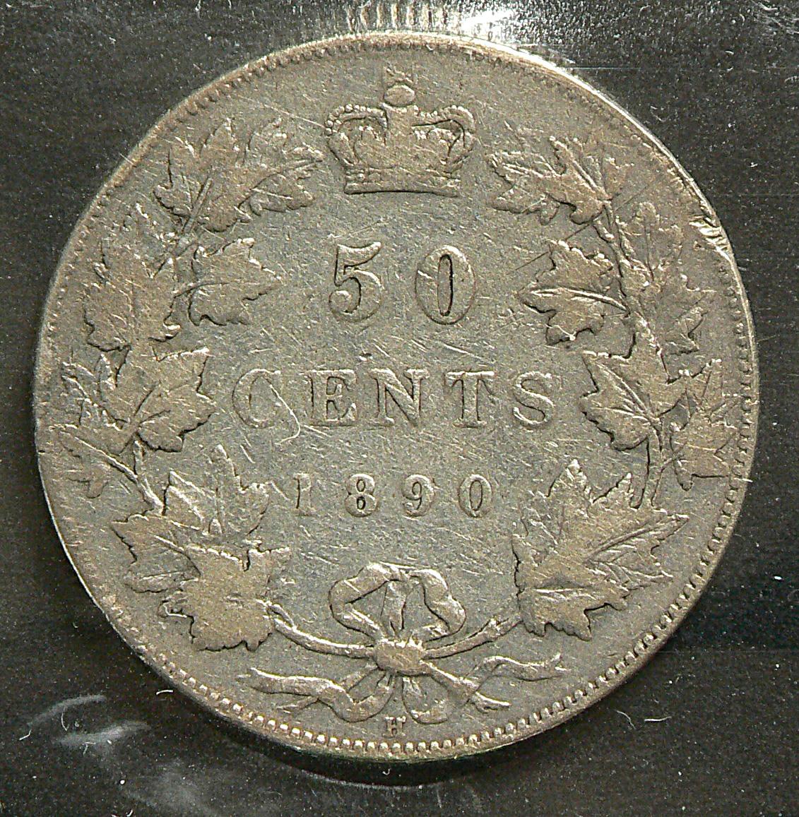 50 Cents 1890H, graded CCCS VG-8; Rim Nicks.