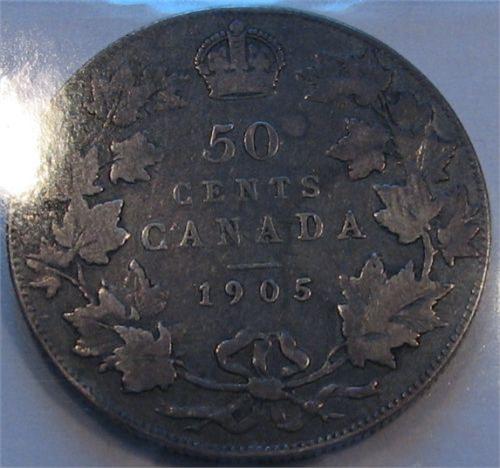 50 Cents 1905 CCCS certified F-12. Toned example, Strong reverse text.