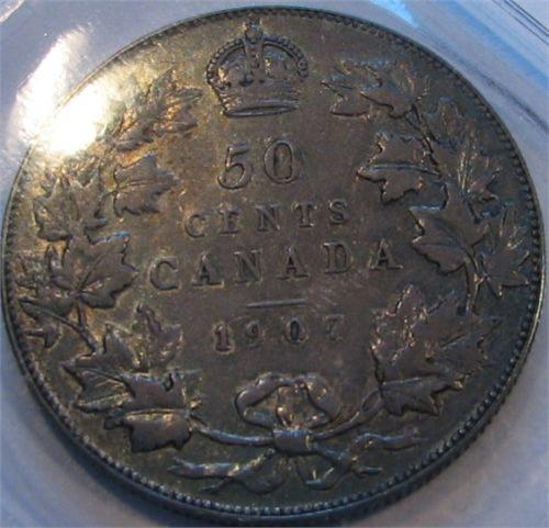 50 Cents 1907 ICCS certified VF-30. Toned example with underlying blue.