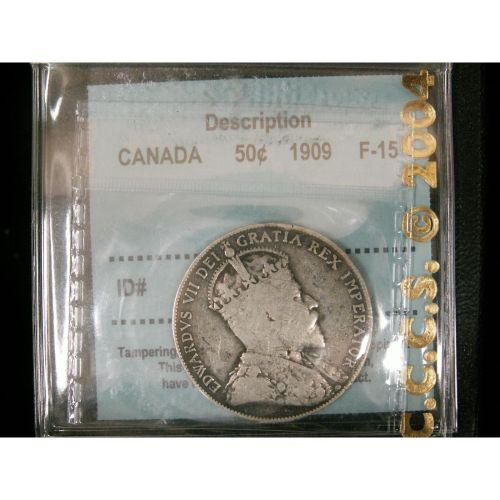 50 Cents 1909, graded CCCS F-15. Problem free