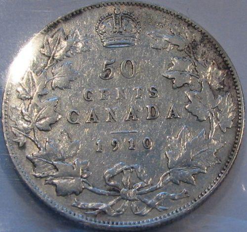 50 Cents 1910 CCCS certified VF-30; Edward Leaves, Rim Nick. Light toning.