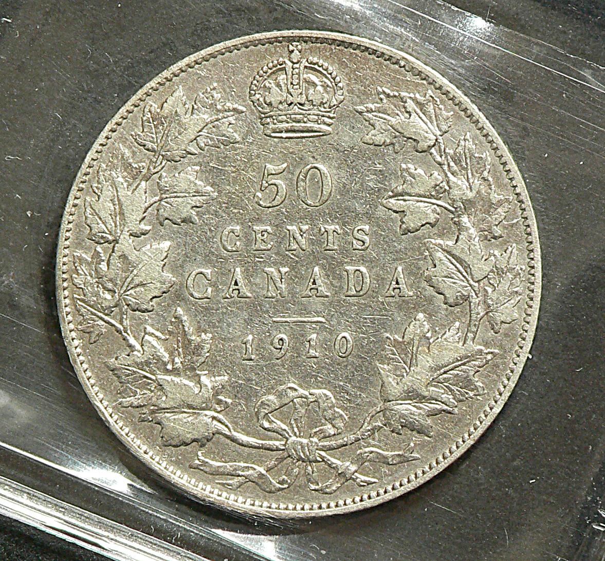 50 Cents 1910, graded ICCS VF-30; Edwardian Leaves.