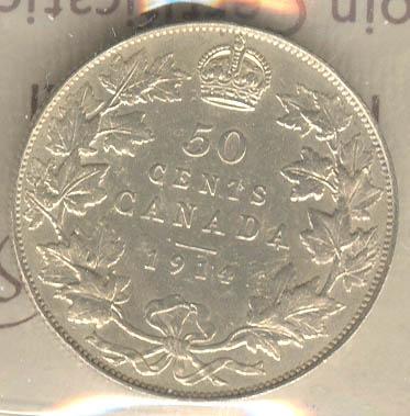 50 Cents 1914, graded ICCS VF-30; Polished.