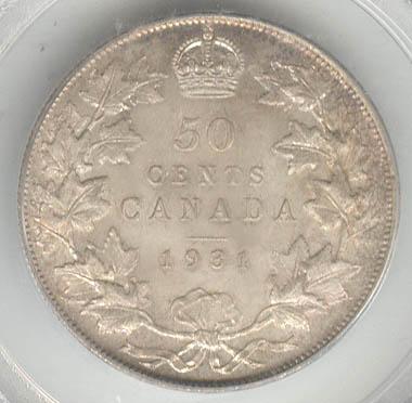 50 Cents 1931, graded PCGS MS-65, cross-graded ICCS MS-64. Light original toning.