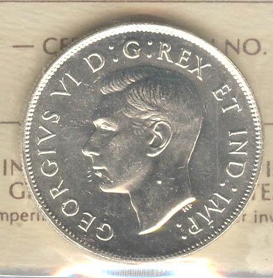 50 Cents 1947, graded ICCS MS-62; Curved Right 7.