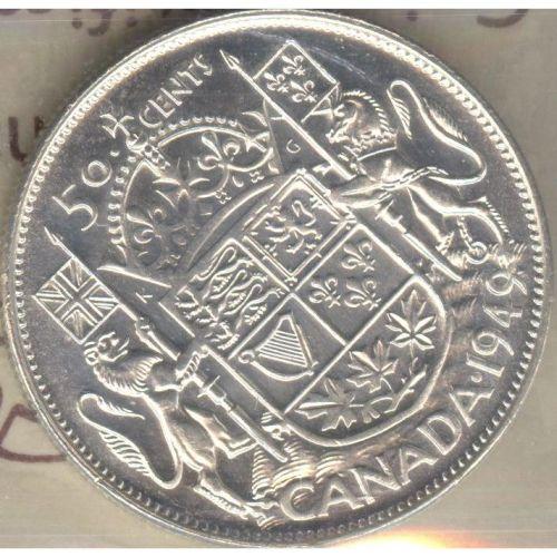50 Cents 1949, graded ICCS MS-62 Hoof Over 9. Fully brilliant and lustrous.
