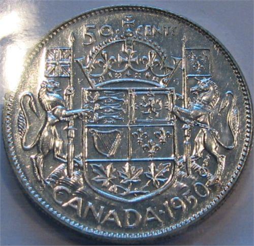 50 Cents 1950 ICCS certified MS-60; No Design 0. Untoned and scarce in mint state.