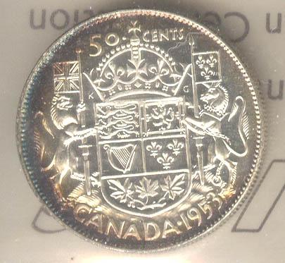 50 Cents 1953, graded ICCS MS-64; Small Date, Cameo.