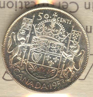 50 Cents 1953, graded ICCS MS-64; Small Date.