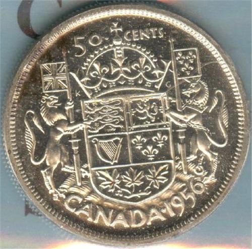 50 Cents 1956 CCCS certified PL-65; Cameo. Light Purple on the right side of this example.