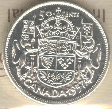 50 Cents 1957, graded ICCS PL-65; Cameo.