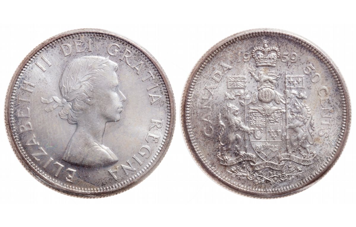 50 Cents. 1959. ICCS graded Superb Gem Uncirculated-66. Tied one of only 2 finest graded by ICCS.