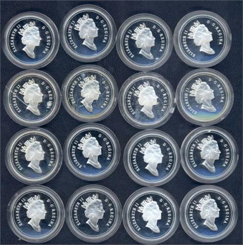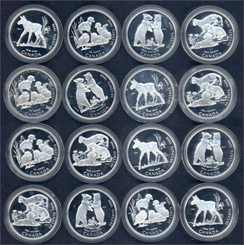 50 Cents 1996 Little Wild Ones Set of 4 Sterling Silver Coin. Set include 50 Cents Black Bear, 50 Cents Wood Duck, 50 Cents Cougar, 50 Cents Moose. Lot of 4 sets, total of 16 Coins.