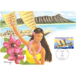 Card Subject Matter: Hawaii Statehood 1959-1984 Post Mark Date: Mar 12 1984 Issue Location: Honolulu, HI Stamp Category: Postage Stamp Stamp Face Valu