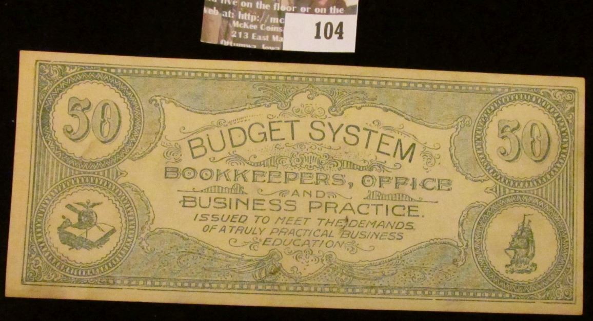 $50 College Currency Scrip. "Budget System Bookkeepers, Office and Business Practice Issued to Meet the Demands, of a Truly Practical Business Education".