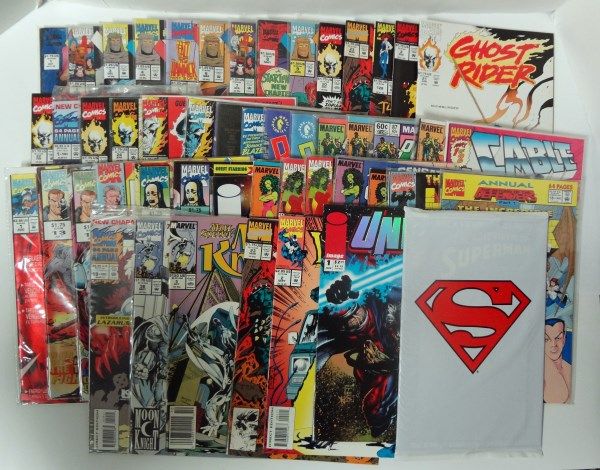 includes Union, Verom & Ghost Rider, superman collector's Set in org pk and more, 80's & 90's Est $25-$40