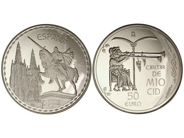 50 Euros. 2007. AR. Cantar del Mio Cid. En estuche original, con certificado. PROOF.