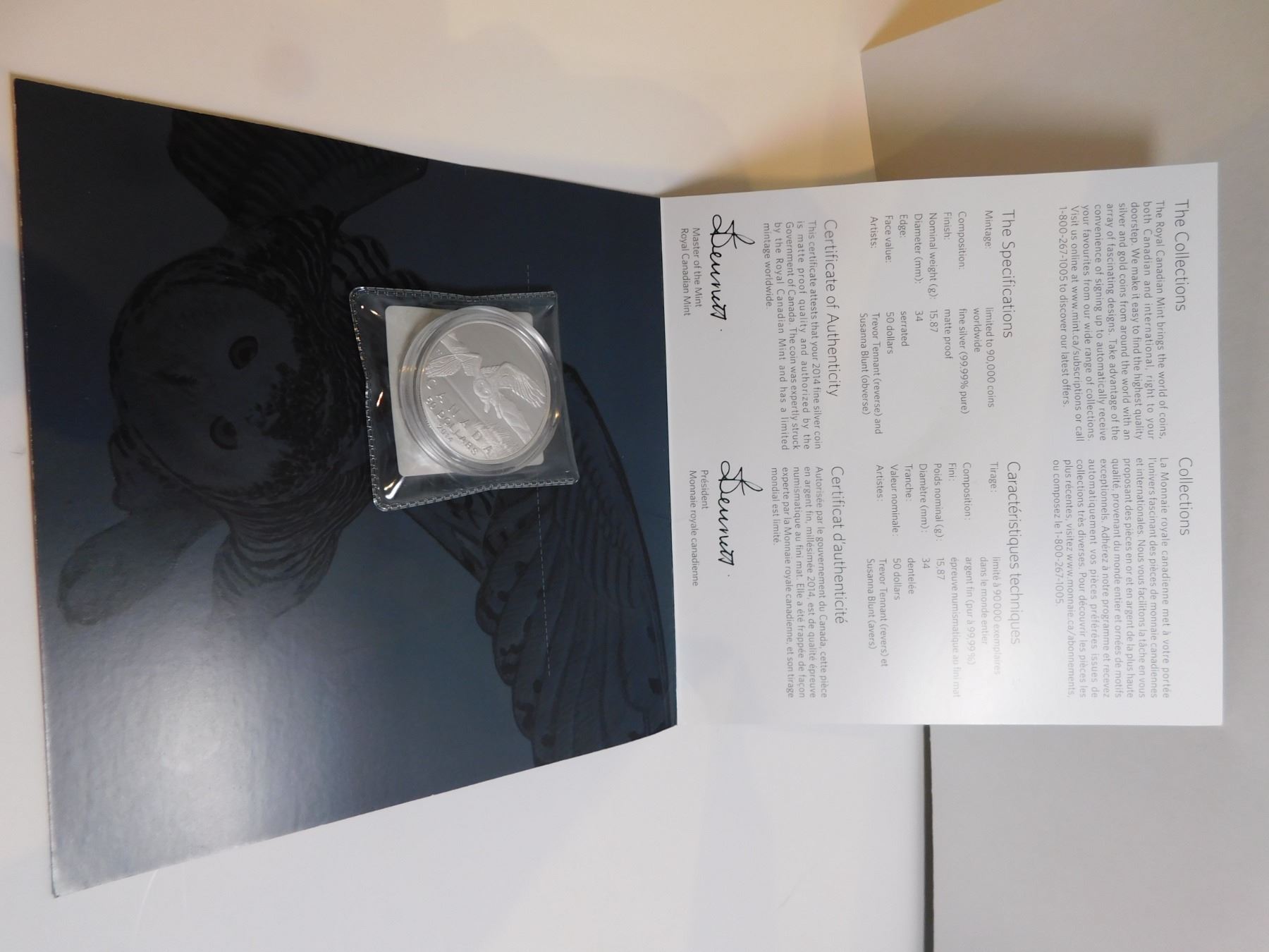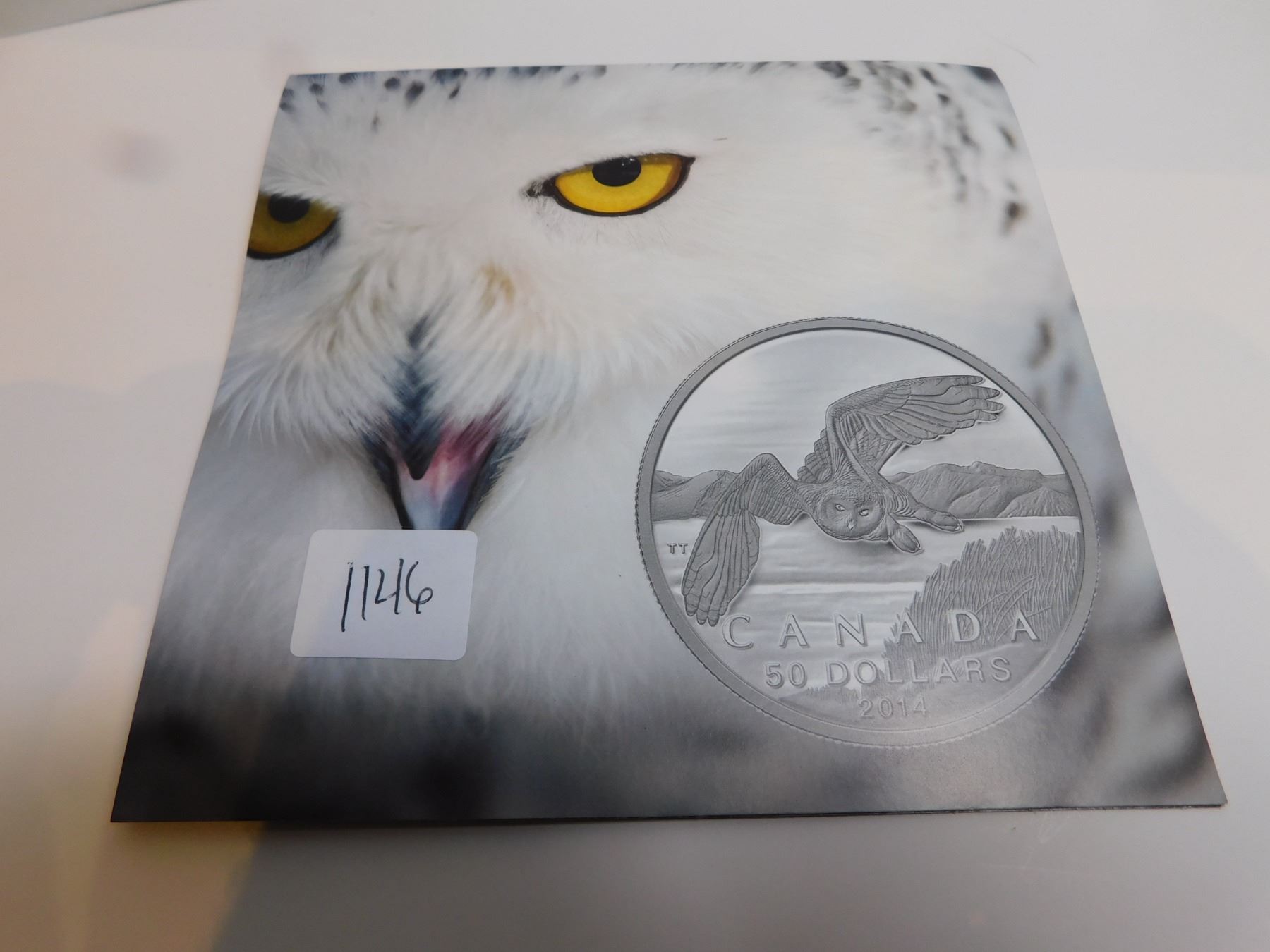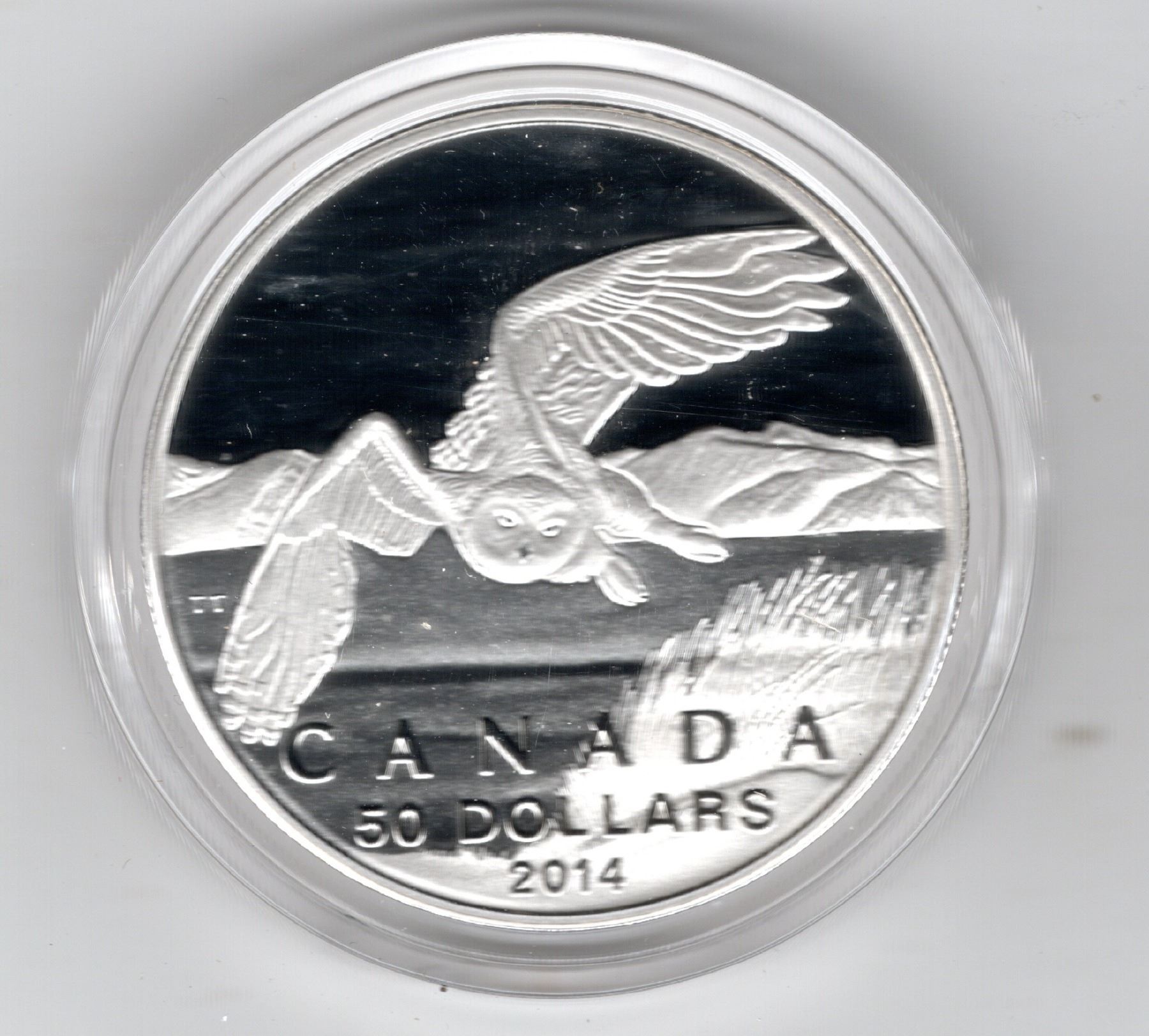 50 FOR 50, HALF OUNCE .9999 SILVER COIN, 2014, RCM, SNOWY OWL, $50 FACE