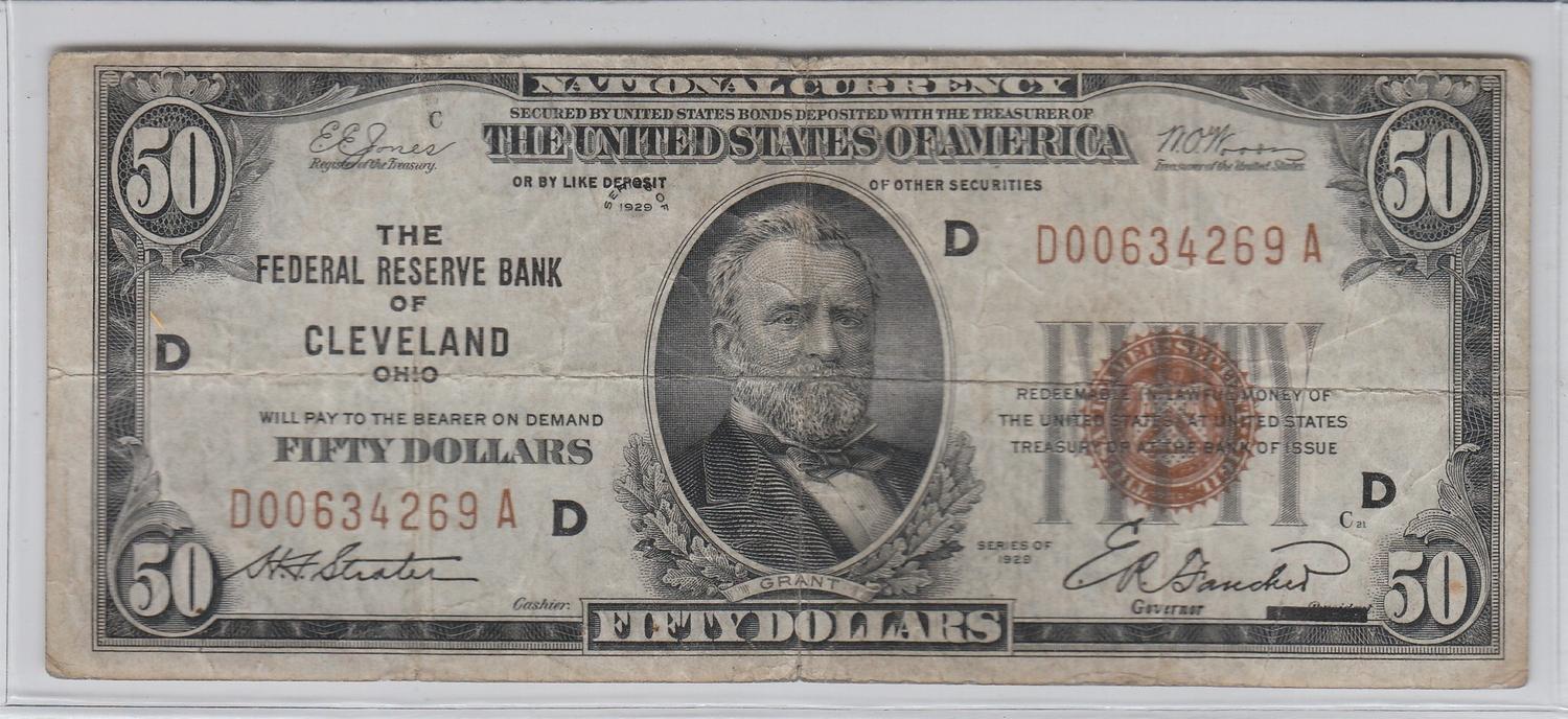 $50 FRBN 1929 BROWN SEAL CLEVELAND