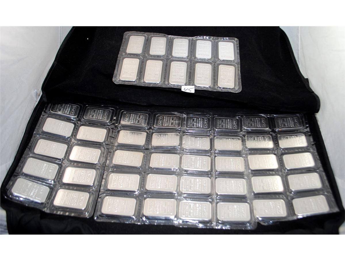 50 JOHNSON MATTHEY 1 TROY OZ FINE SILVER BARS FROM SAFE DEPOSIT - STILL IN ORIGINAL PLASTIC WRAP - SOLD PER PIECE TIMES 50