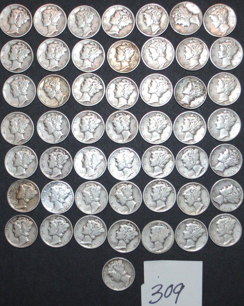 50 MERCURY DIMES FROM SAFE DEPOSIT - MIXED DATES AND MINTS - SOLD PER COIN TIMES 50
