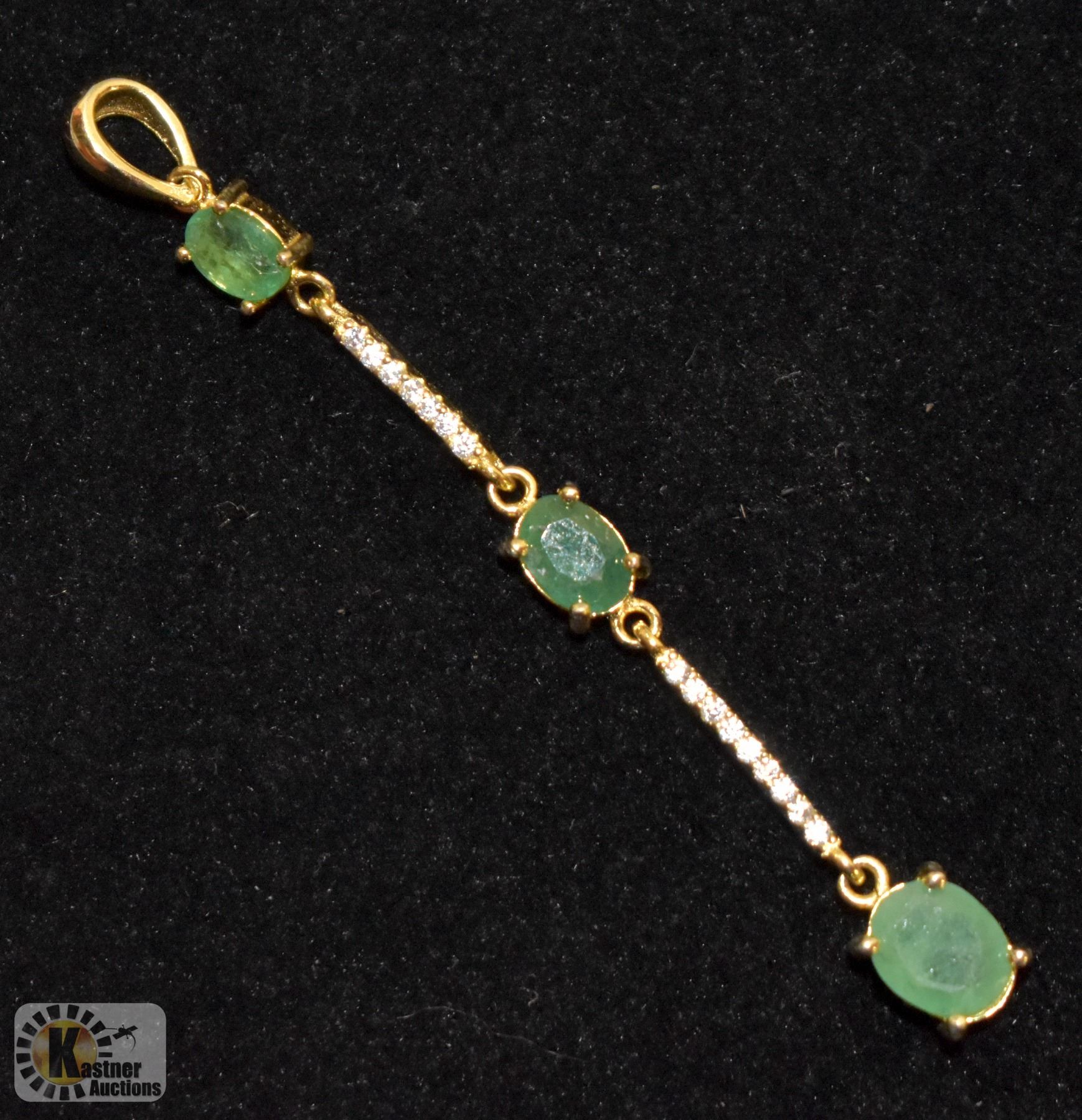 #50-NATURAL UNHEATED EMERALD,CZ PENDANT