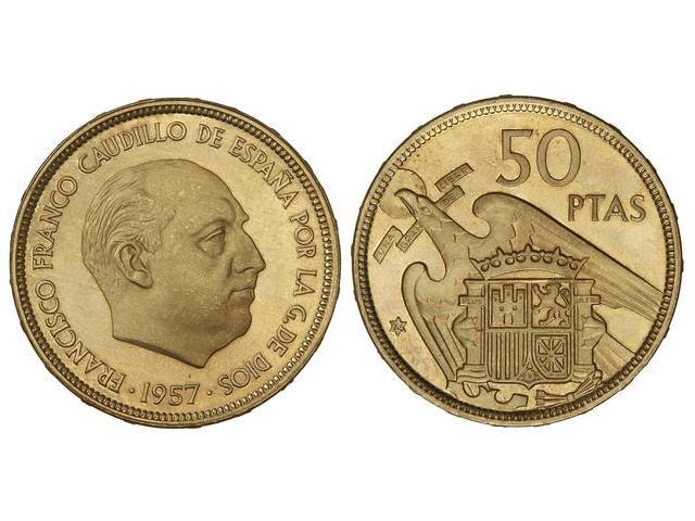 50 Pesetas. 1957 (*74). Procedente de cartera F.N.M.T. PRUEBA.