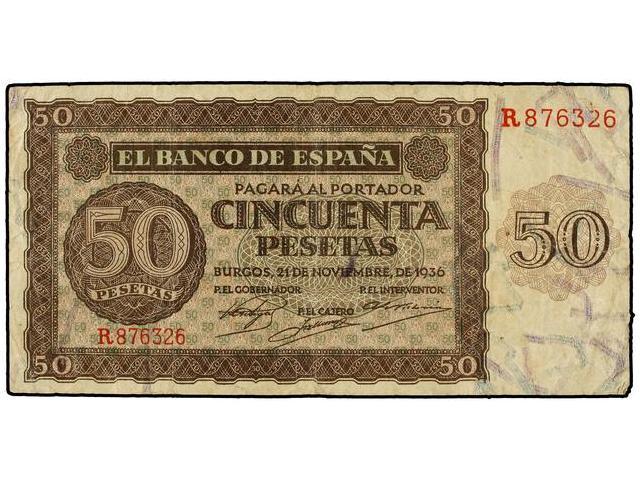 50 Pesetas. 21 Noviembre 1936. Serie R. Ed-D21a; LB-222a. BC+.