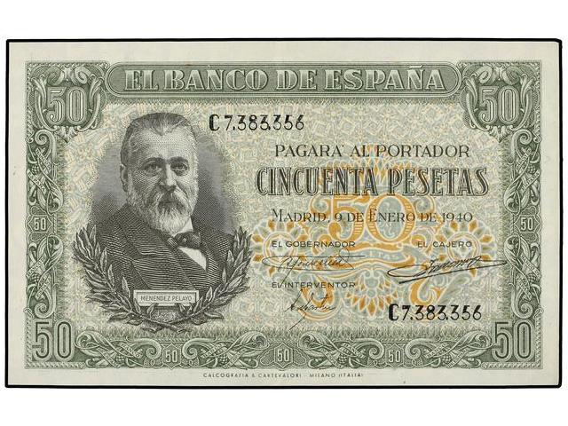 50 Pesetas. 9 Enero 1940. Menéndez y Pelayo. Serie C. Ed-D38a; LB-247a. EBC-.