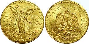 50 Peso Gold From Mexico - Uncirculated Condition-Mexican 50 Peso Gold Coins - Dated Between 1921-28 + 1944-47 - Uncirculated condition - Contains More Than One Ounce Of Pure Gold!