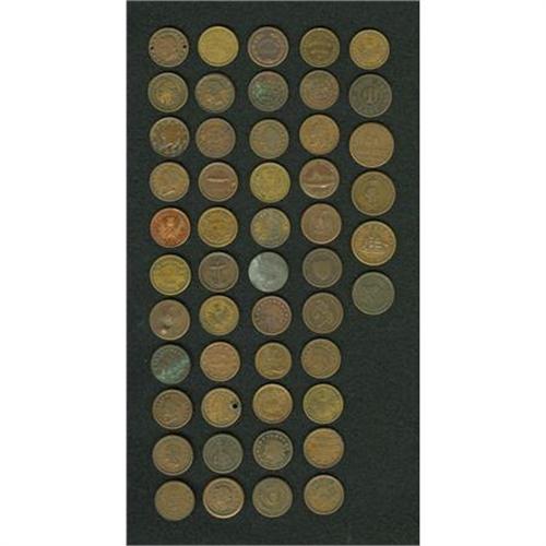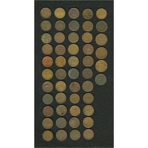 <B>50-Piece Civil War Merchant Token Lot.</B></I> Fifty tokens in various states of preservation. <BR><BR><b>Shipping:</b> Coins & Currency (<a target="_blank" href="http://www.heritageauctions.com/common/shipping.php">view shipping information</a>)