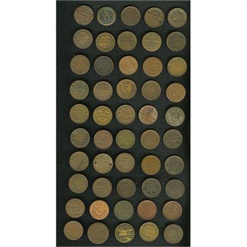 <B>50 Civil War Merchant Tokens.</B></I> An assortment of types and grades.<BR><BR><b>Shipping:</b> Coins & Currency (<a target="_blank" href="http://www.heritageauctions.com/common/shipping.php">view shipping information</a>)