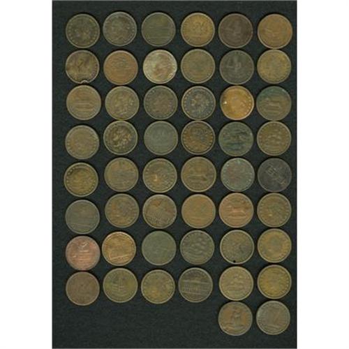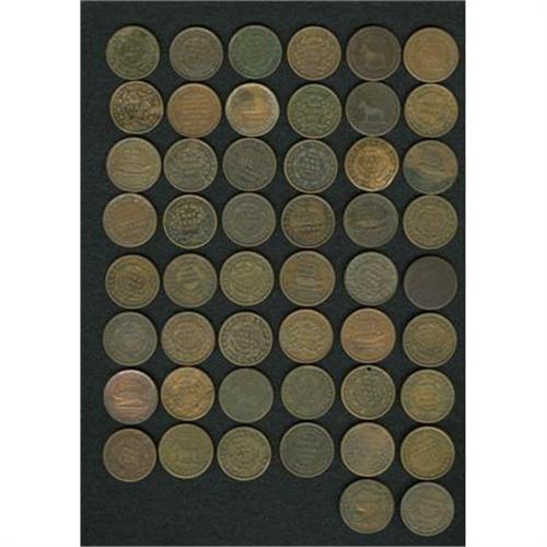 <B>50-Piece Hard Times Token Group Lot.</B></I> Mixed grades, unchecked for varieties. <BR><BR><b>Shipping:</b> Coins & Currency (<a target="_blank" href="http://www.heritageauctions.com/common/shipping.php">view shipping information</a>)