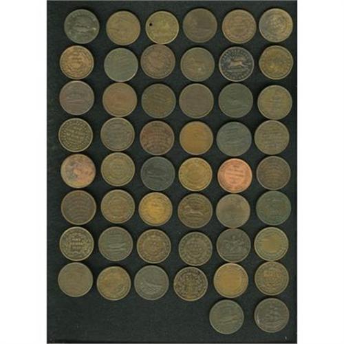 <B>50-Piece Hard Times Token Group Lot.</B></I> Mixed grades, unchecked for varieties or rarities.<BR><BR><b>Shipping:</b> Coins & Currency (<a target="_blank" href="http://www.heritageauctions.com/common/shipping.php">view shipping information</a>)