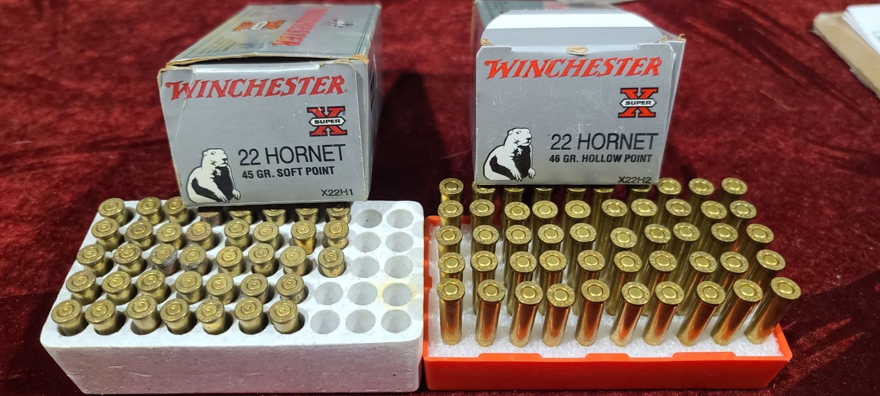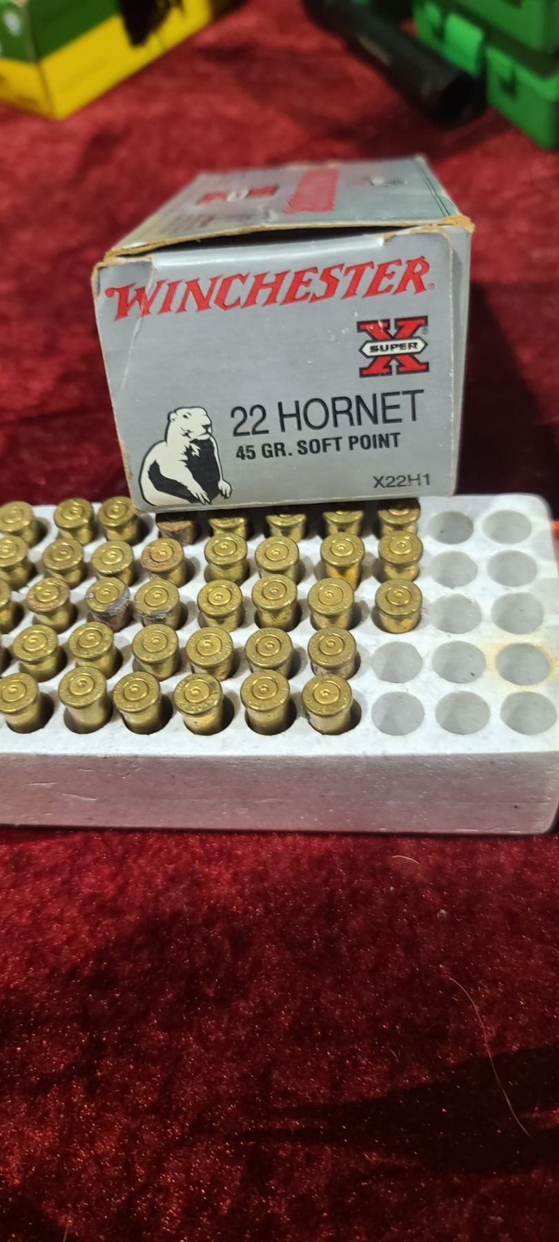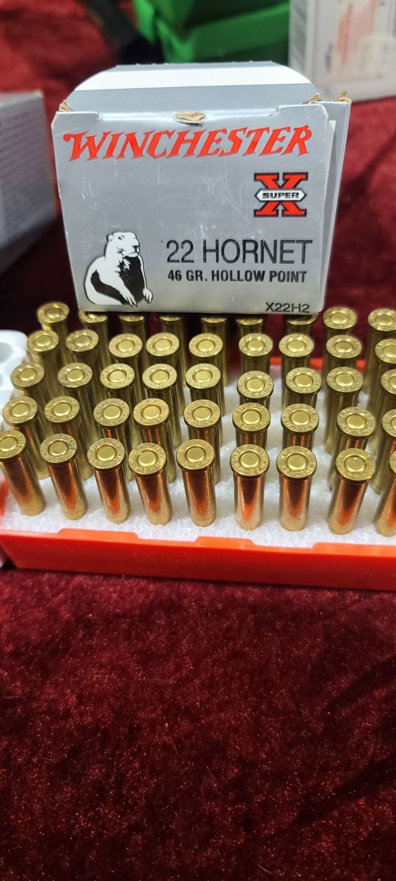 50 ROUNDS OF WIN SUPER X 22HORNET 46HR HP AND 37 RNDS OF SPENT BRASS