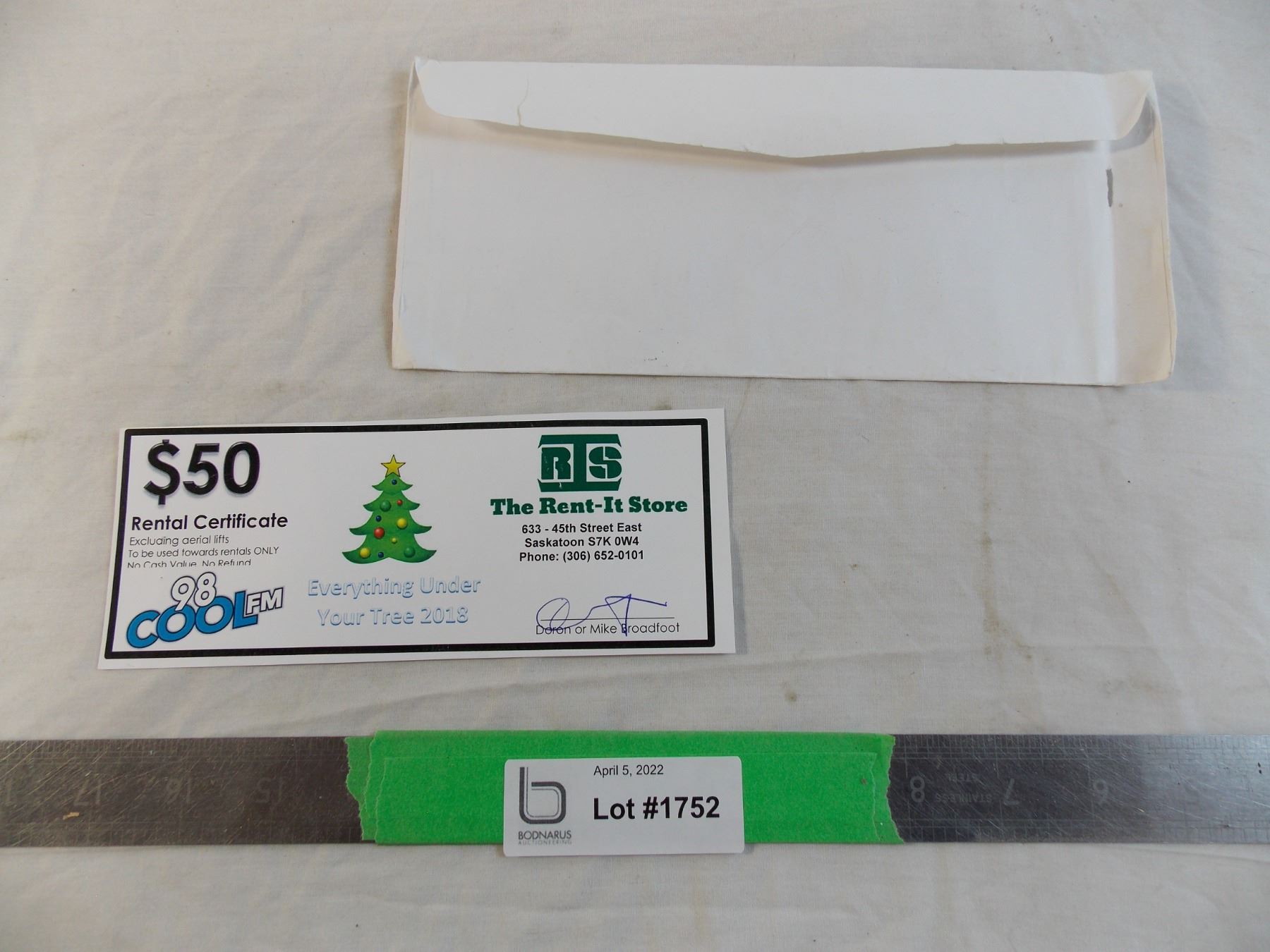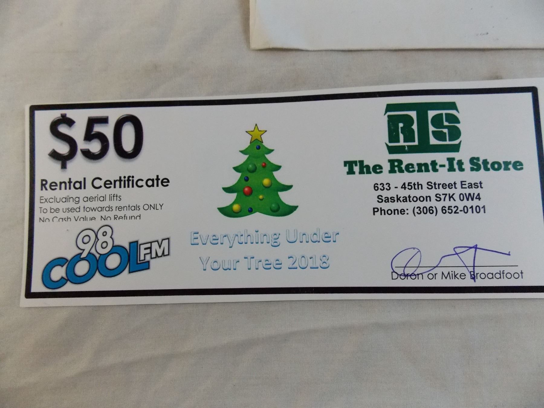 $50 Rental Certificate for the Rent-It store Saskatoon - Certificate is valid for $50 rental